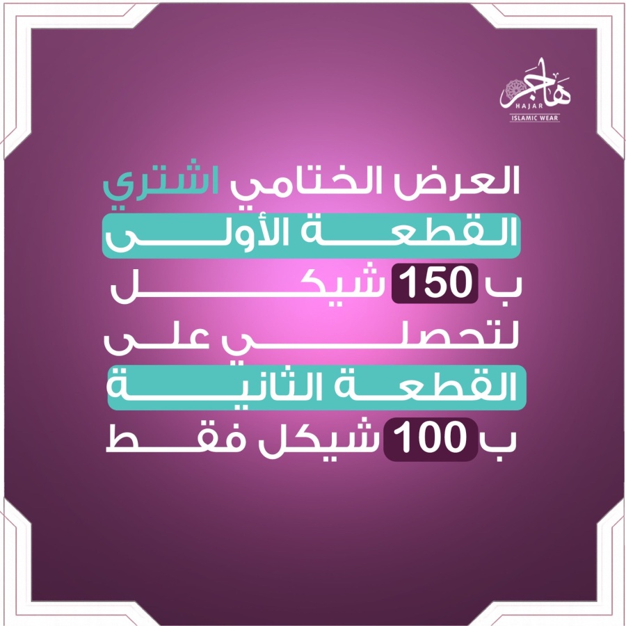اشتري القطعة الاولى من عروض هاجر بسعر 150 لتحصلي على القطعة الثانية بسعر 100 شيكل فقط
