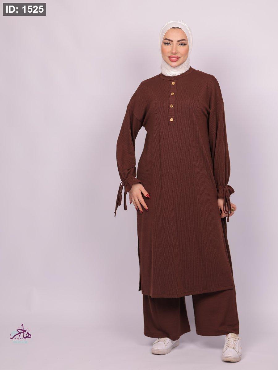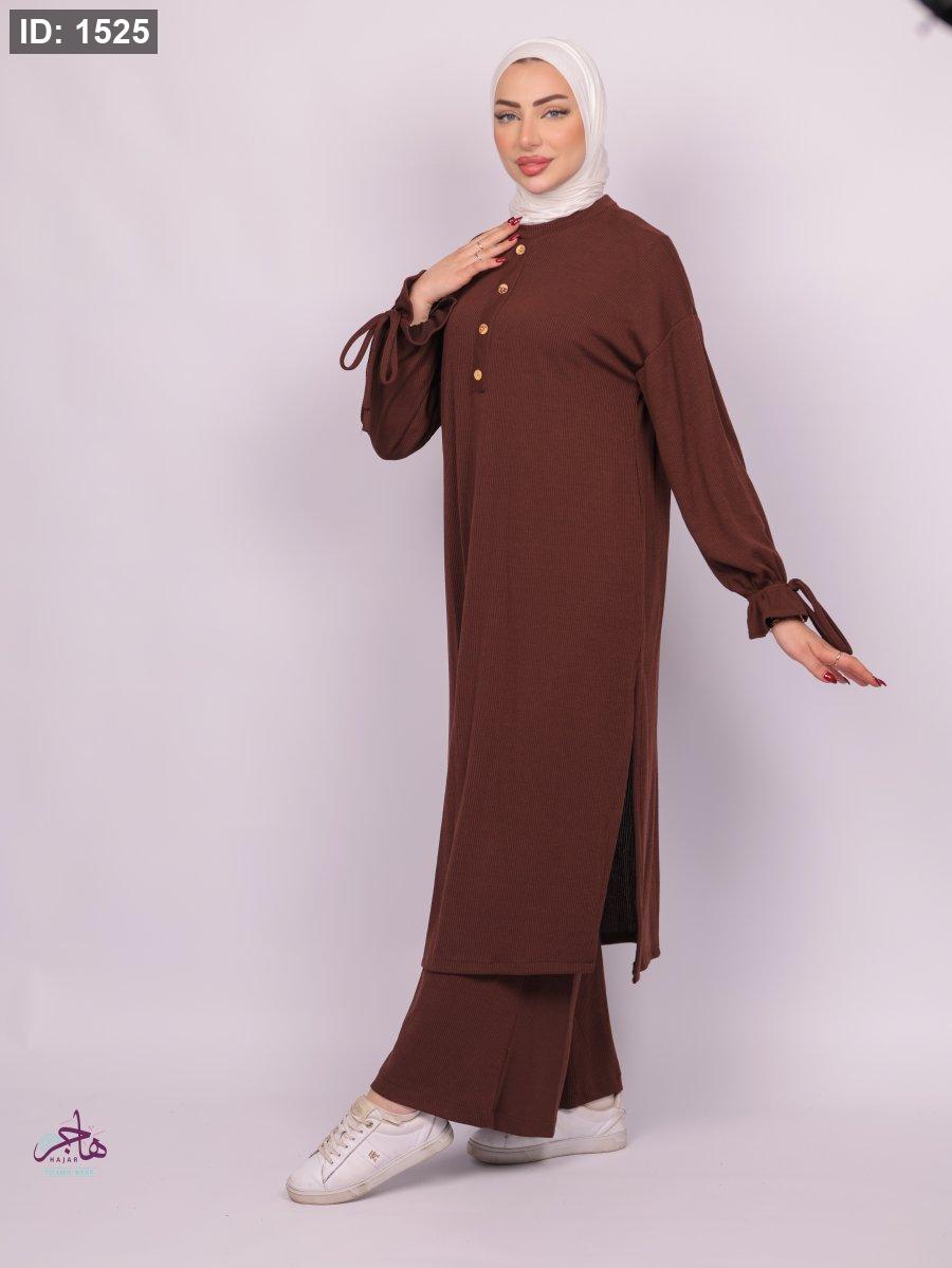 الطقم مكون من قطعتين (بلوز + بنطال )