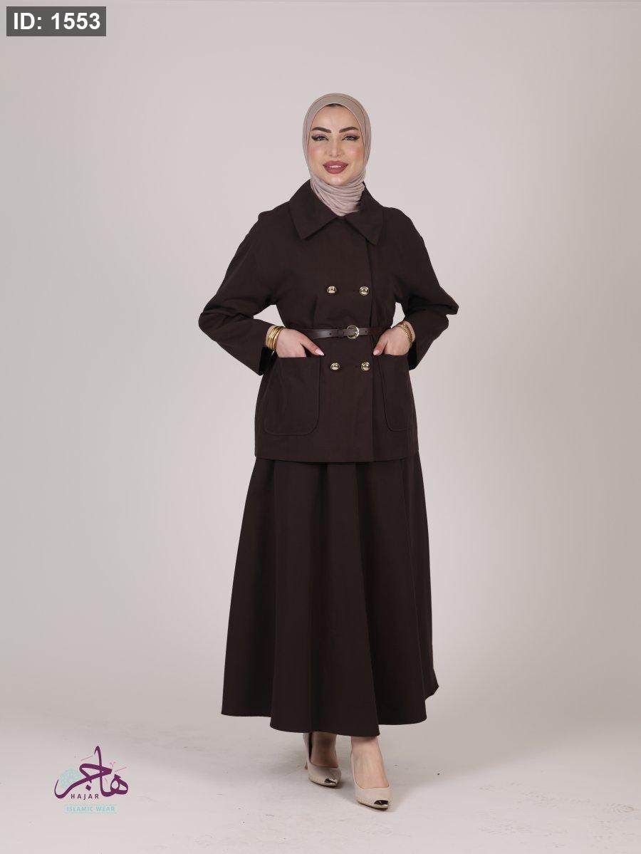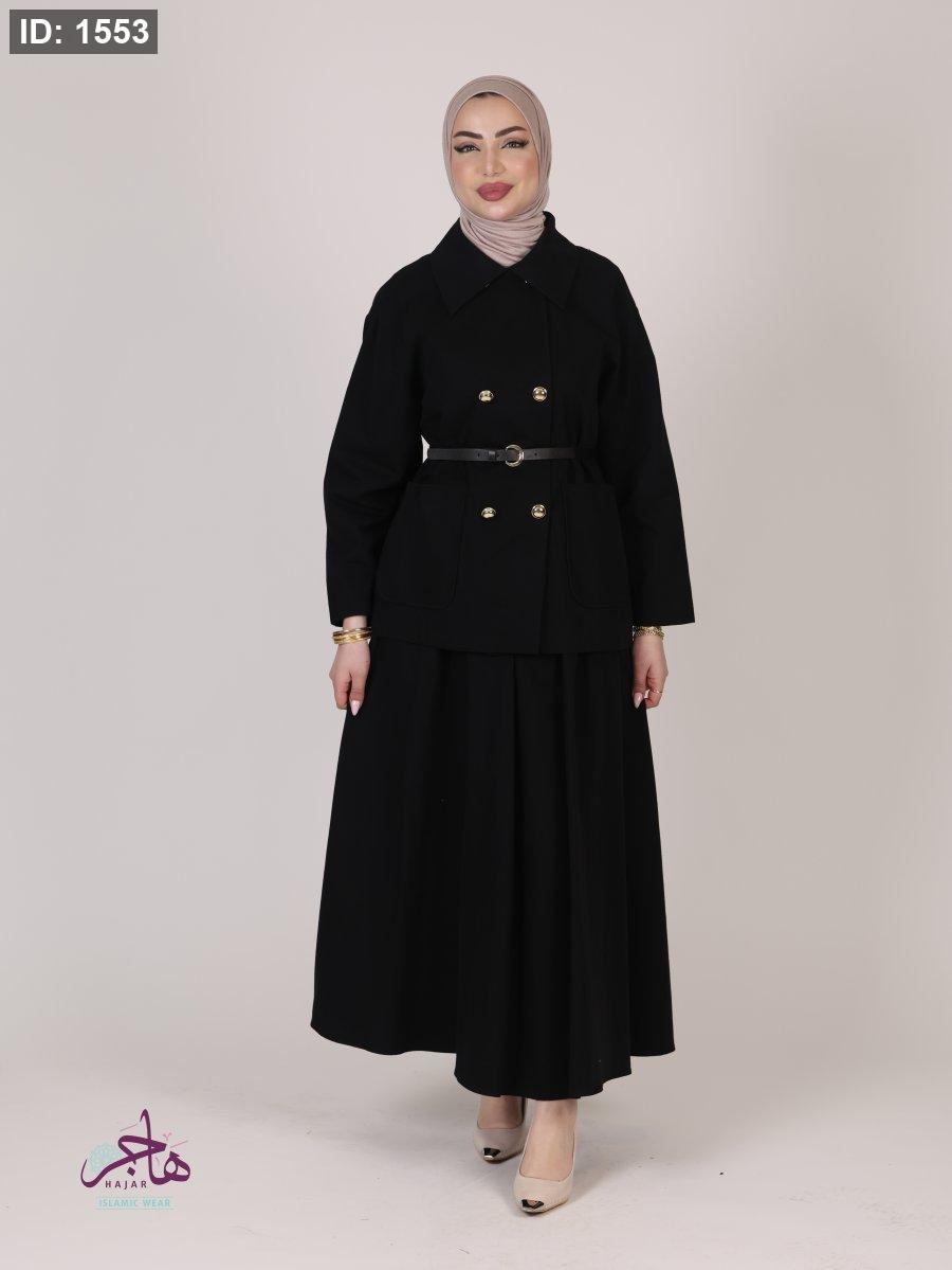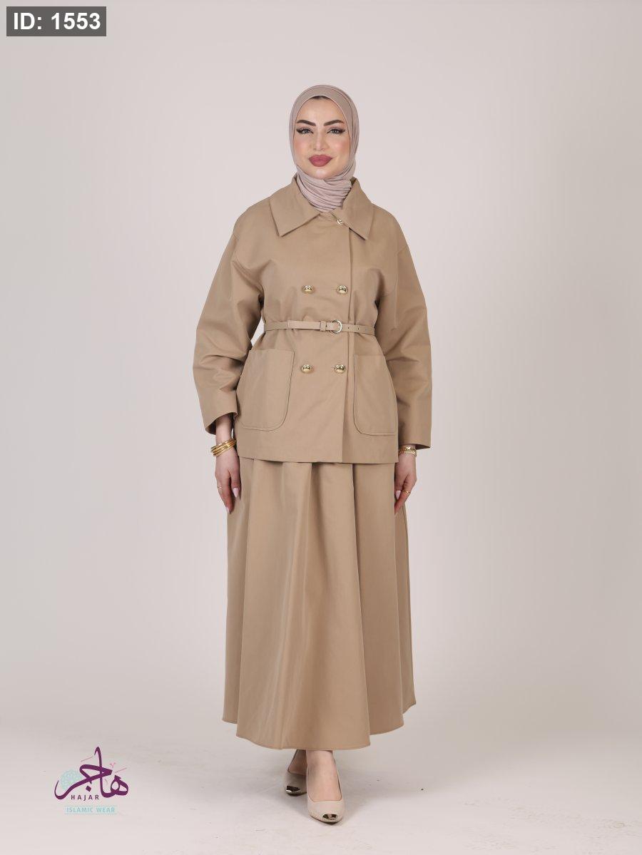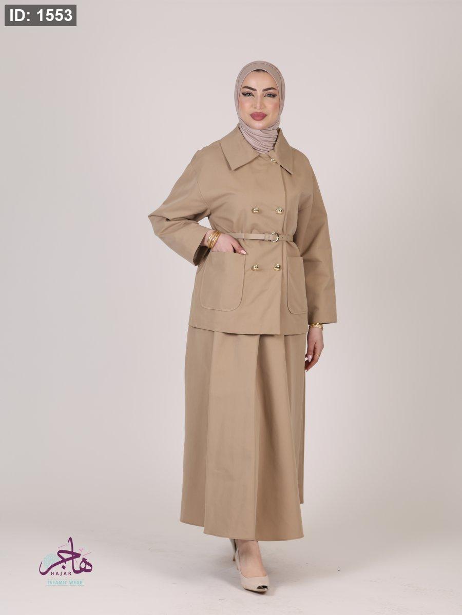 الطقم مكون من قطعتين ( جكيت + تنورة )