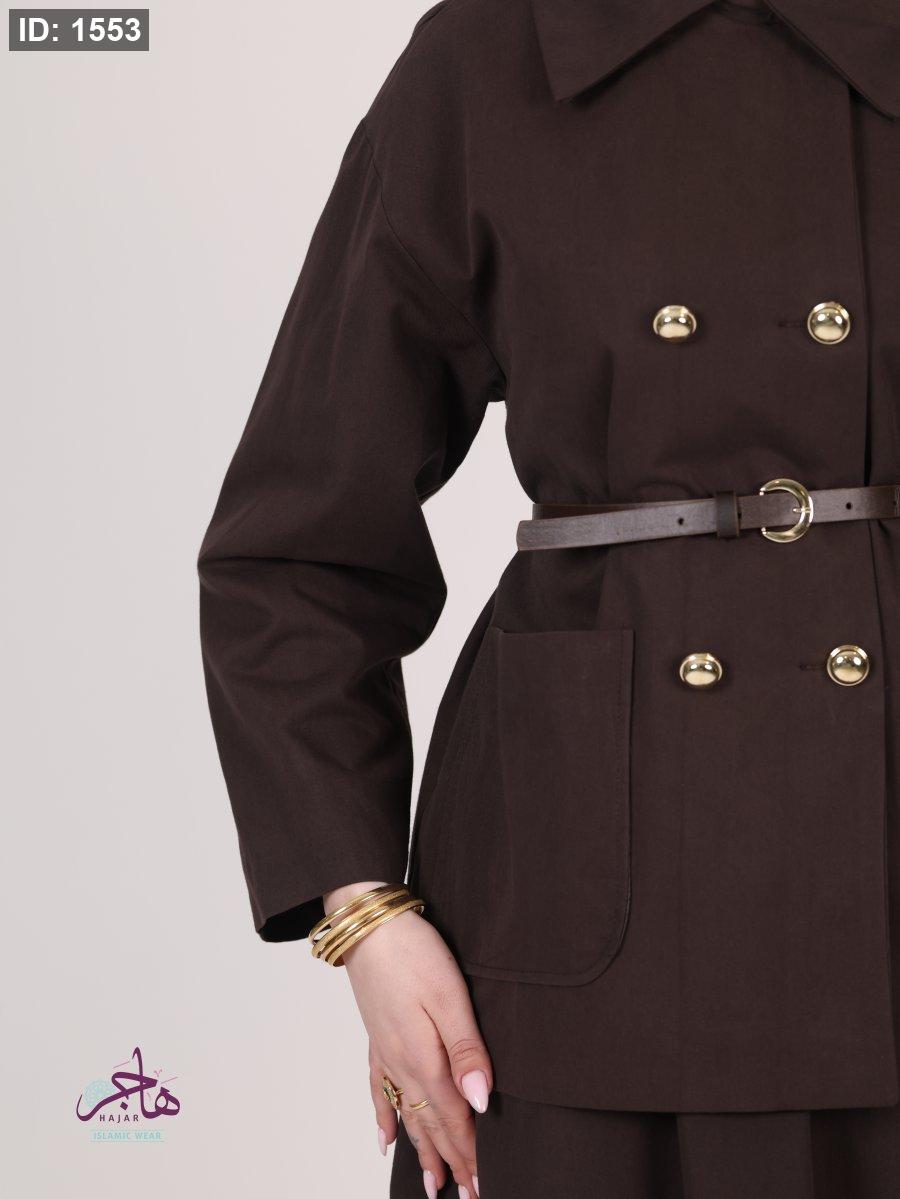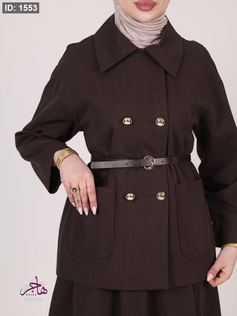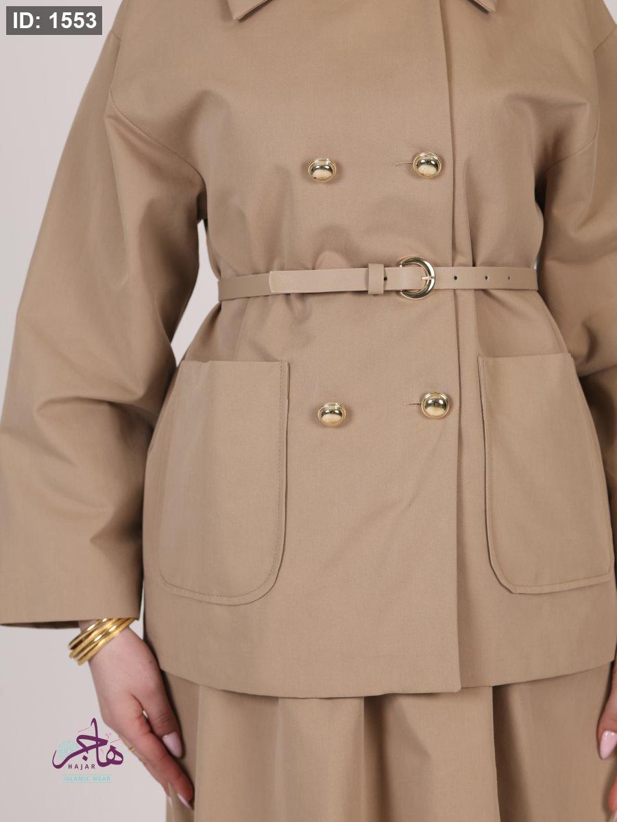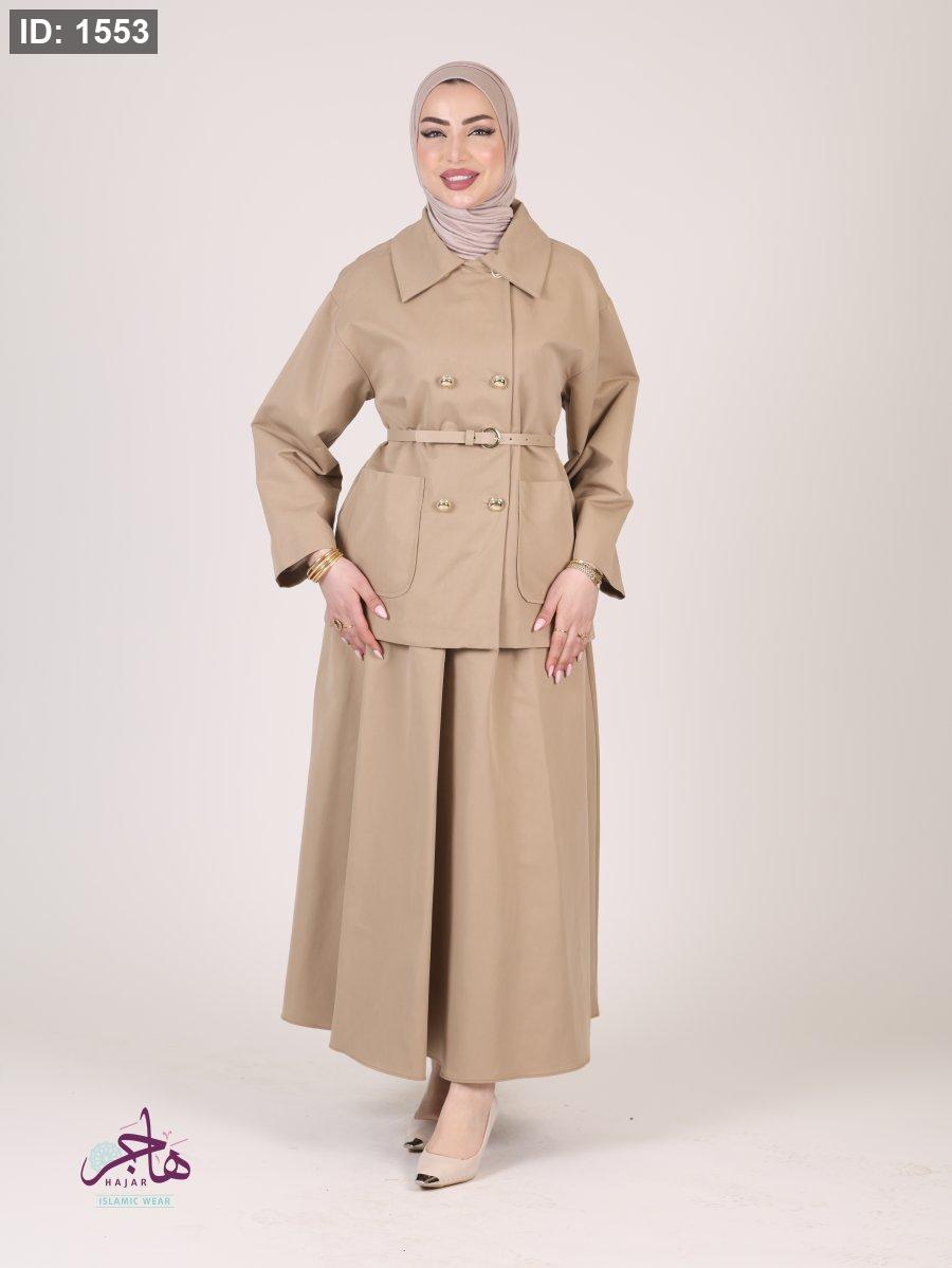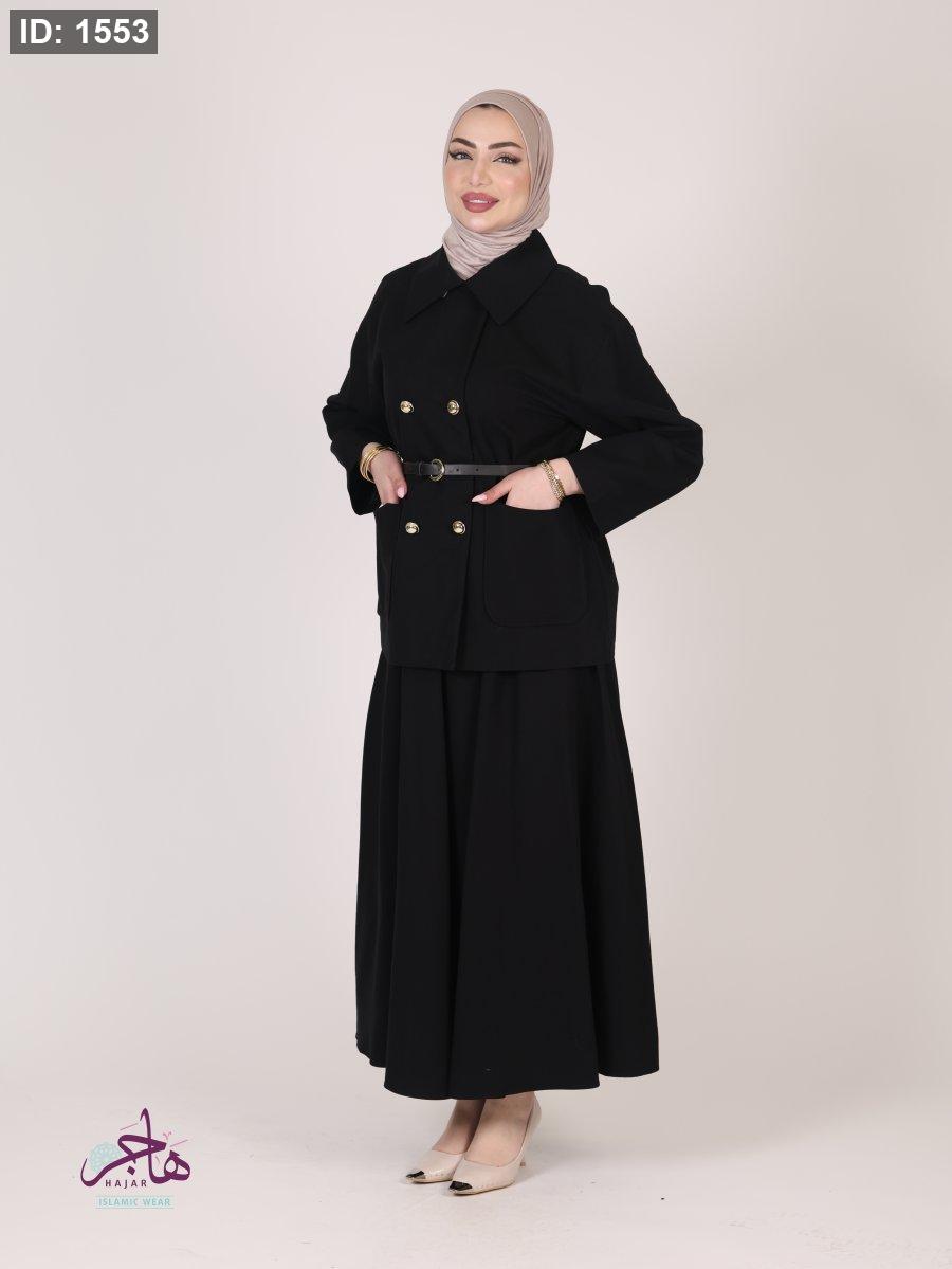 الطقم مكون من قطعتين ( جكيت + تنورة )