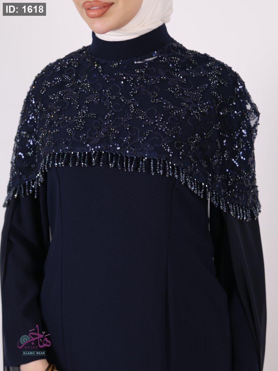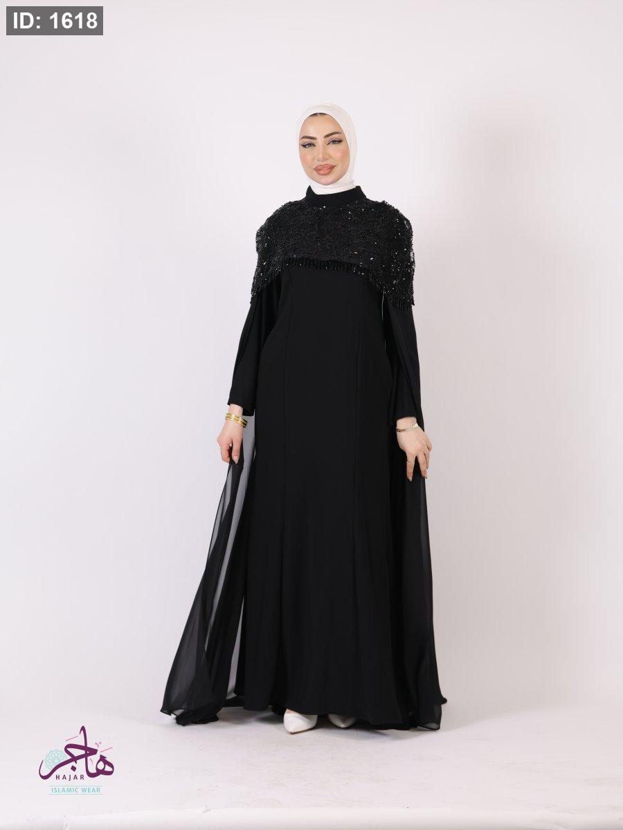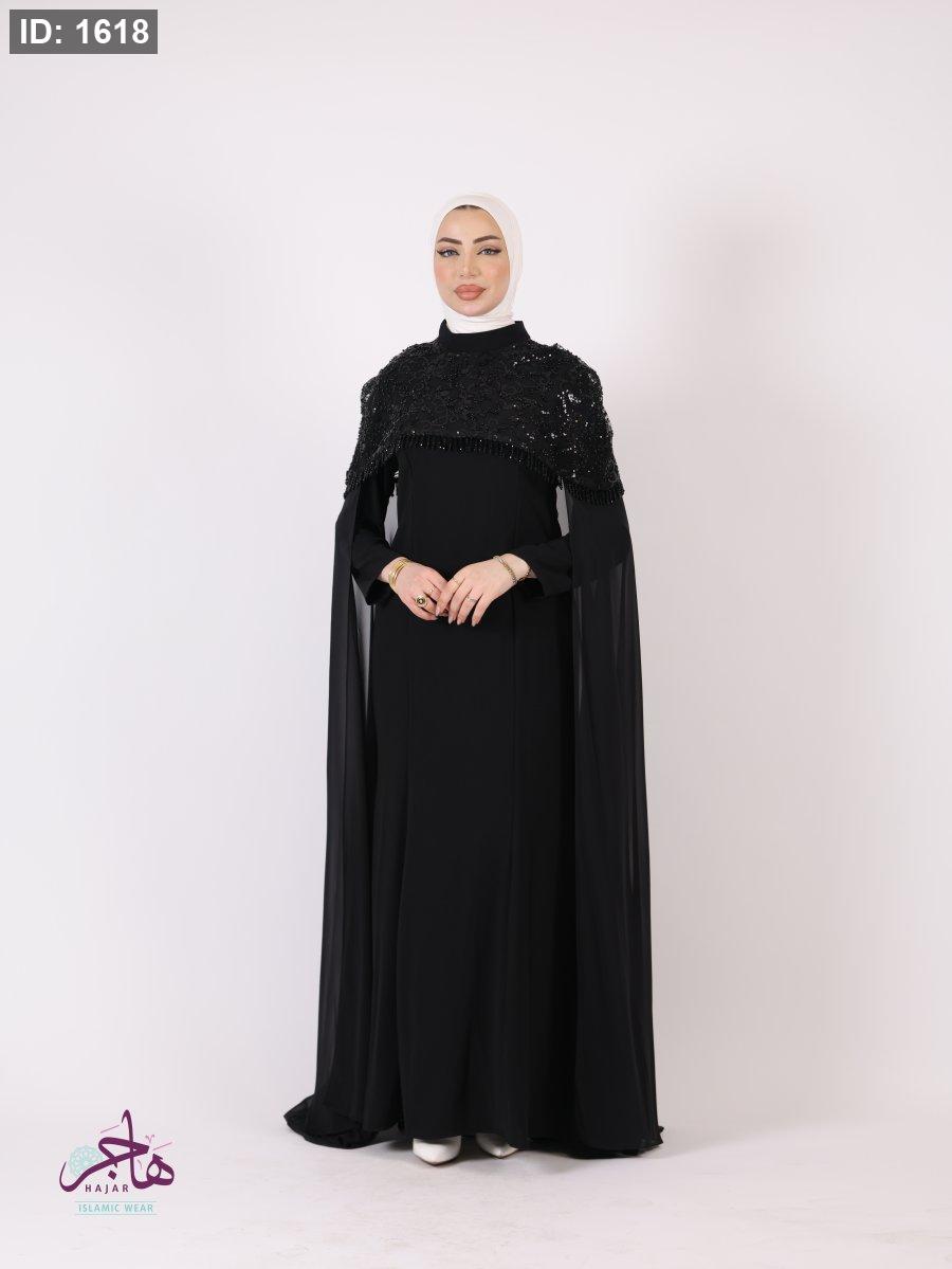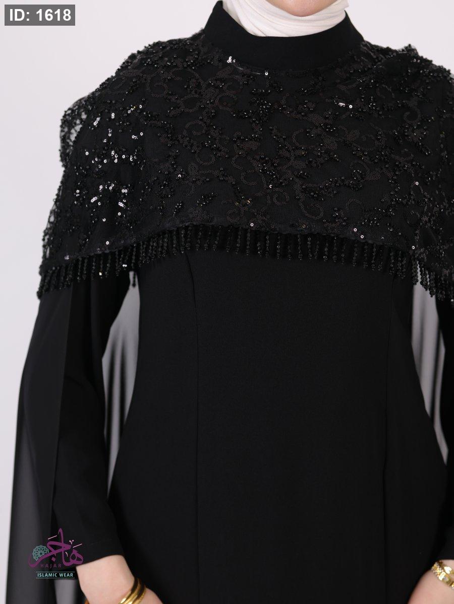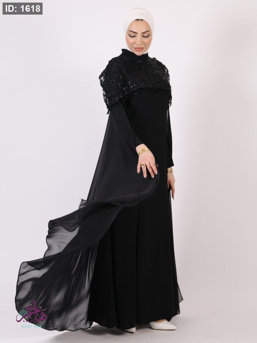 الفستان مكون من قطعتين ( فستان سادة + عباية )