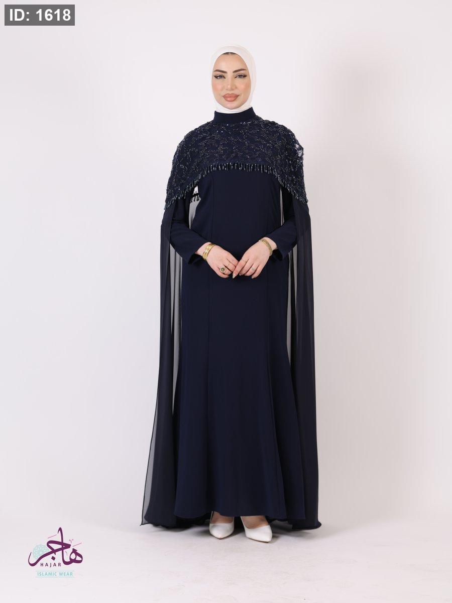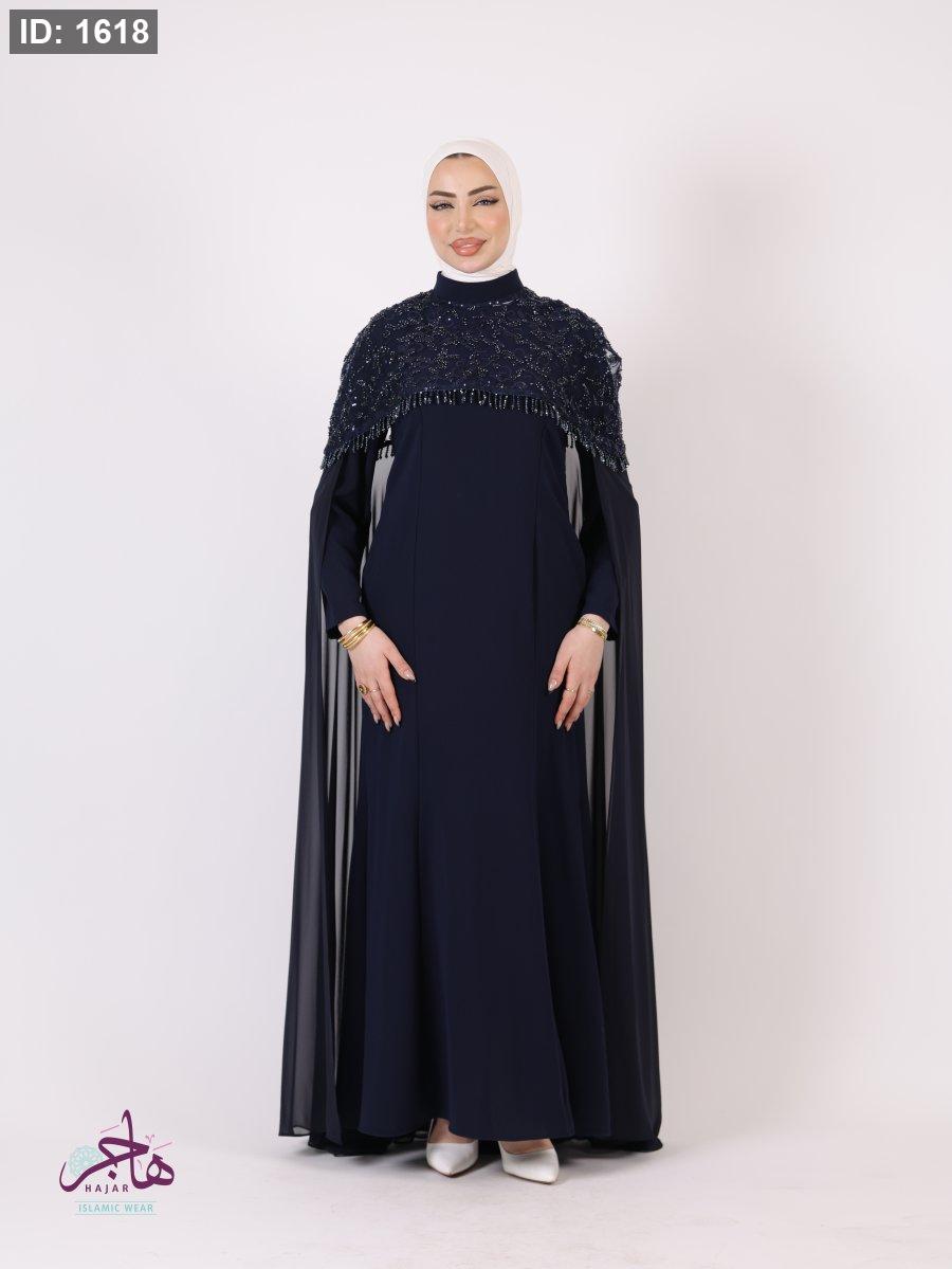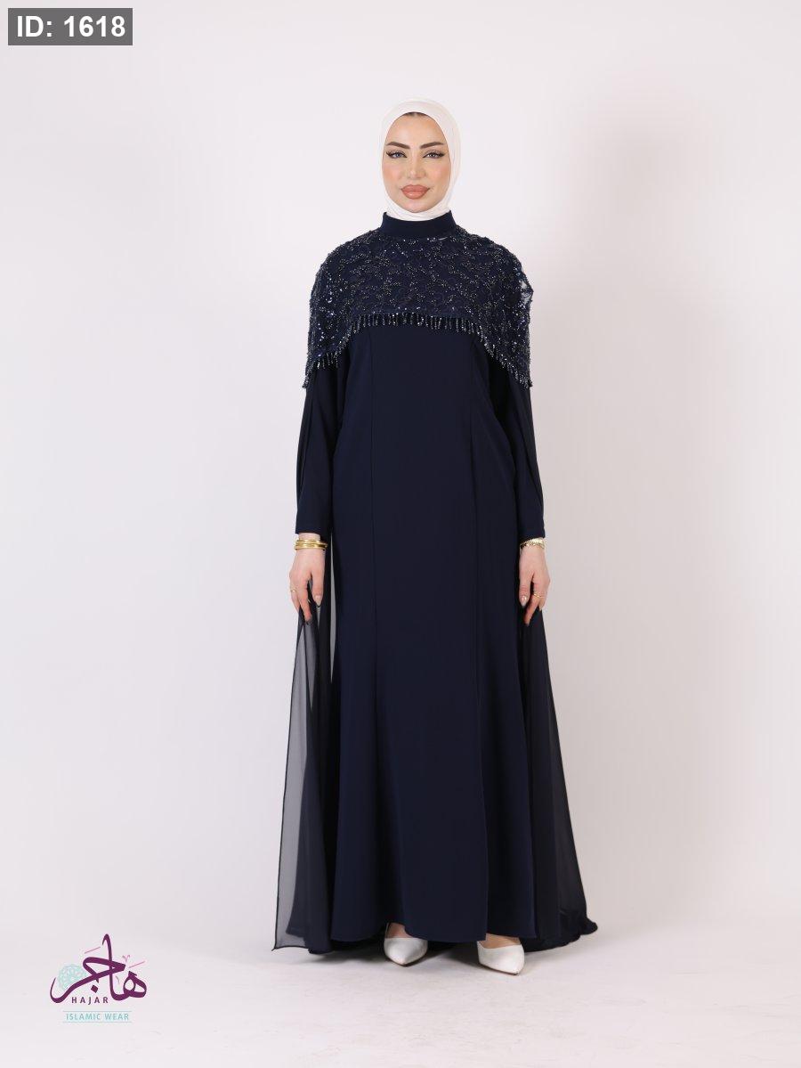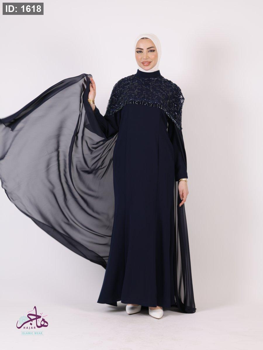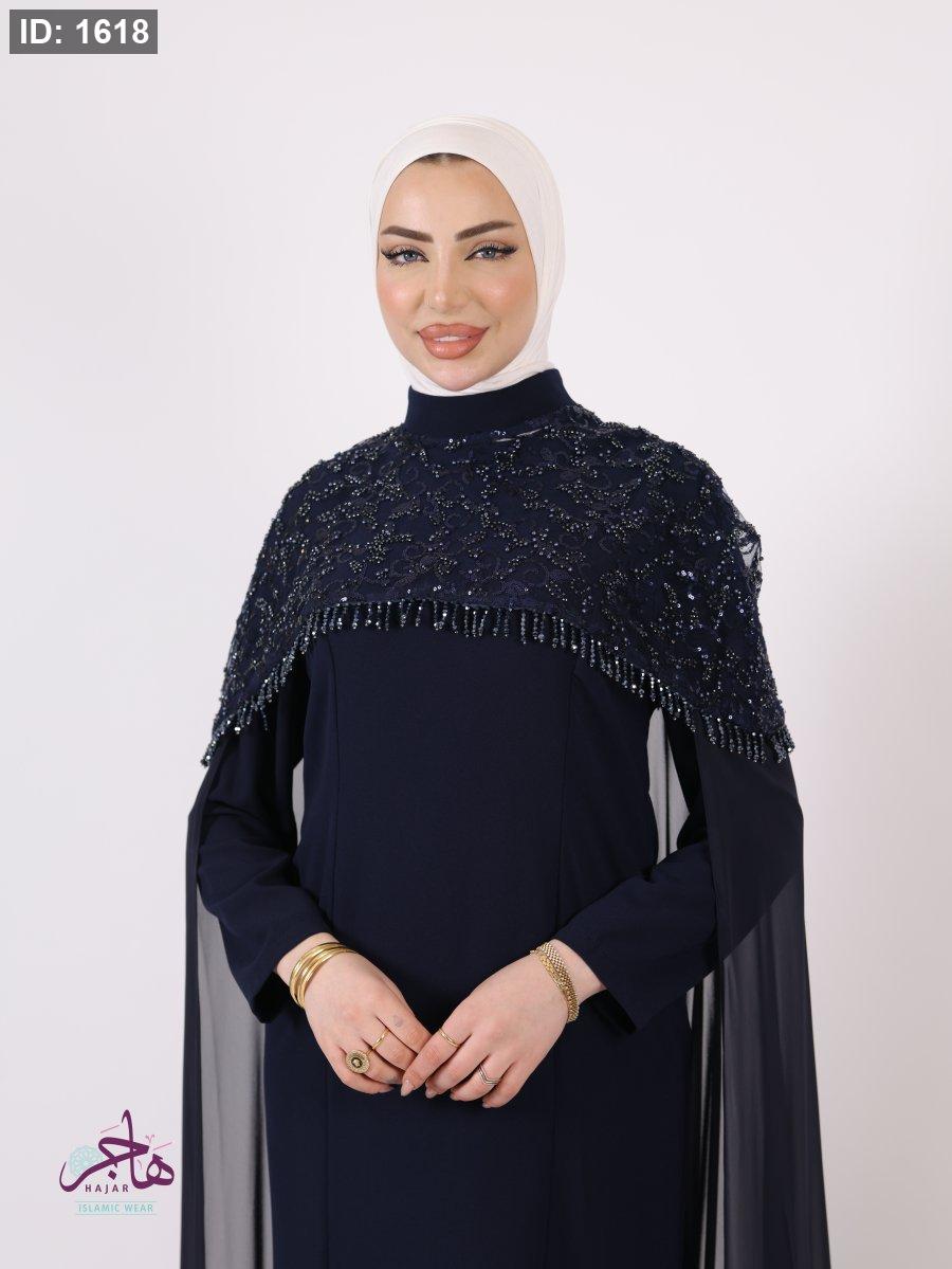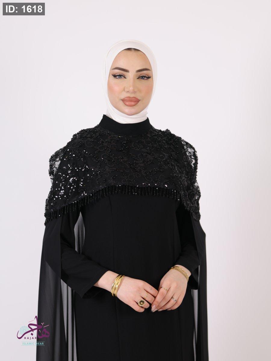 الفستان مكون من قطعتين ( فستان سادة + عباية )
