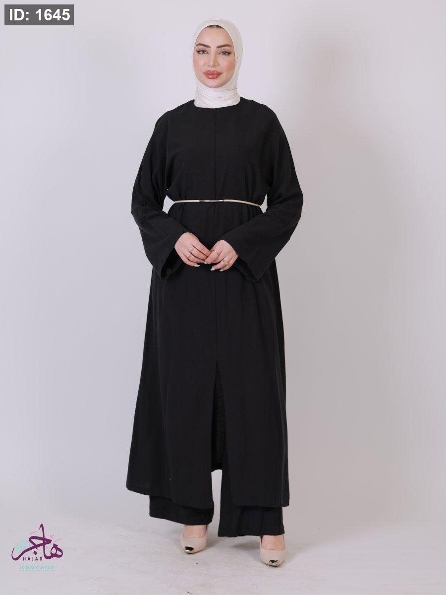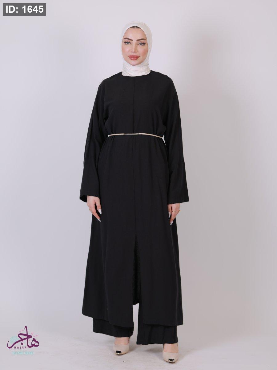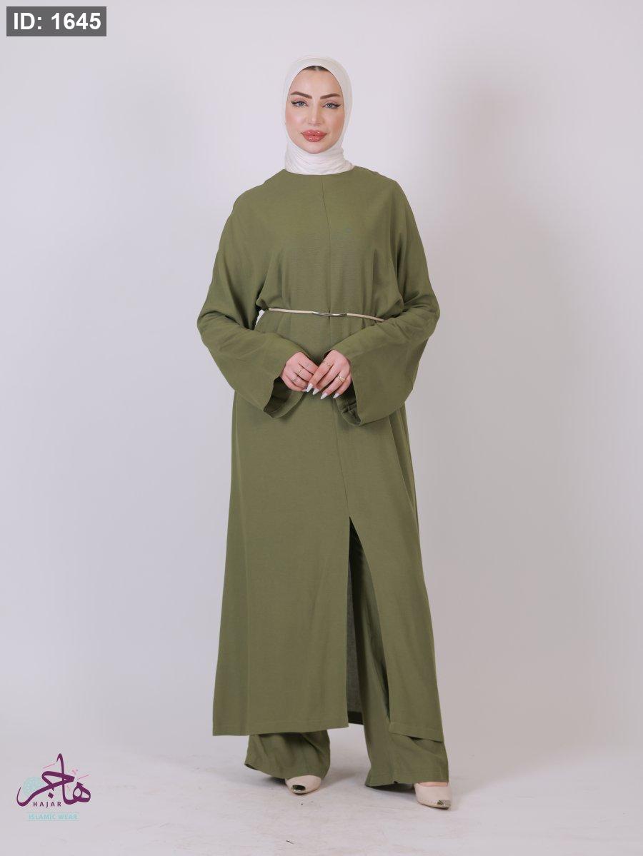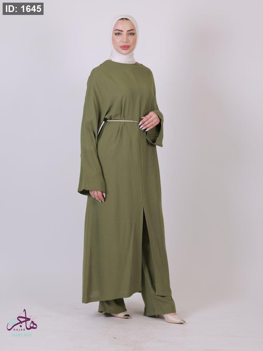 الطقم مكون من ثلث قطع ( بلوز طويل + بنطال + فست حفر)